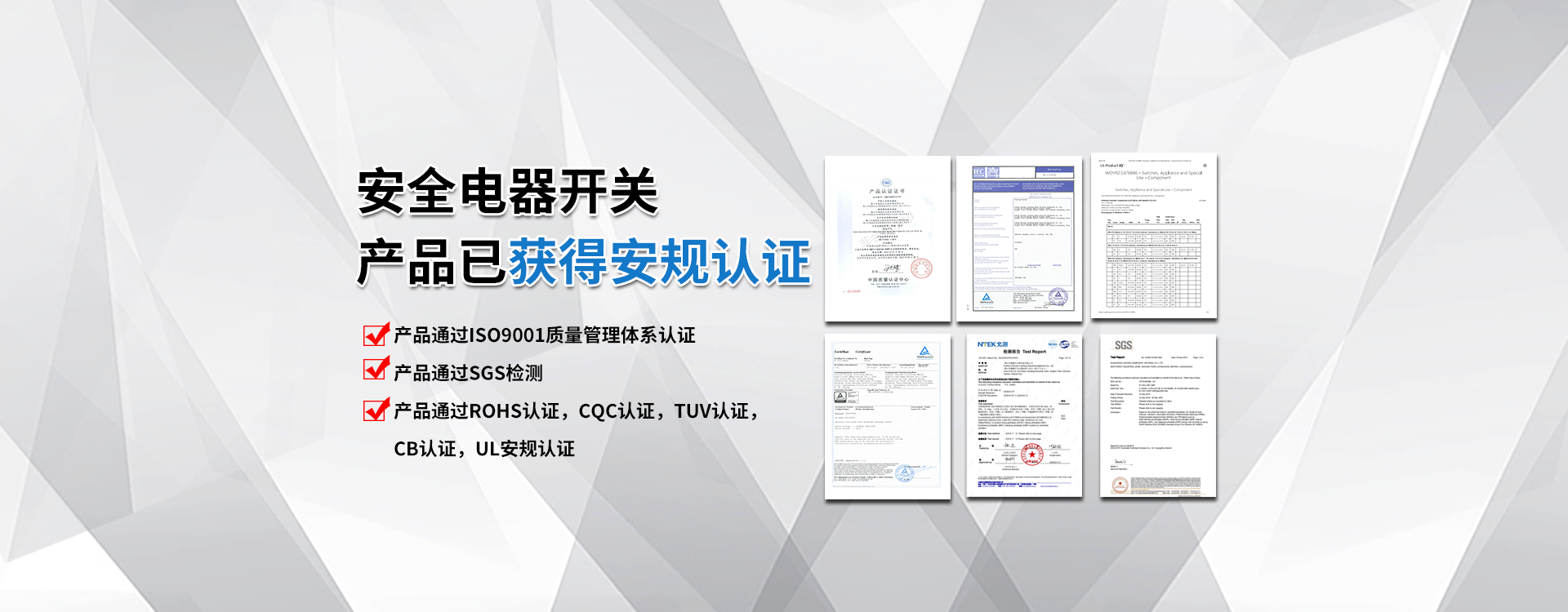 【榮譽(yù)驗(yàn)證】目前已執(zhí)行UL最新的EN61058測(cè)試標(biāo)準(zhǔn),工廠通過(guò)ISO9001